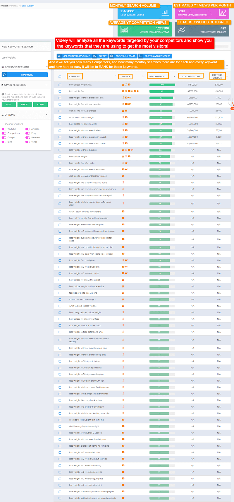 • And now Videly helps you to spot the keywords your competitors are using and recommend better ways of using them in your description, tags, and title so that you can rank higher.