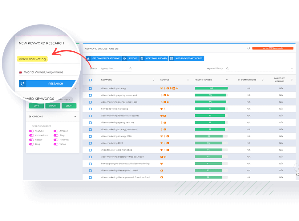 By helping you find untapped keywords, you will definitely get your video on first page of search engines and YouTube.