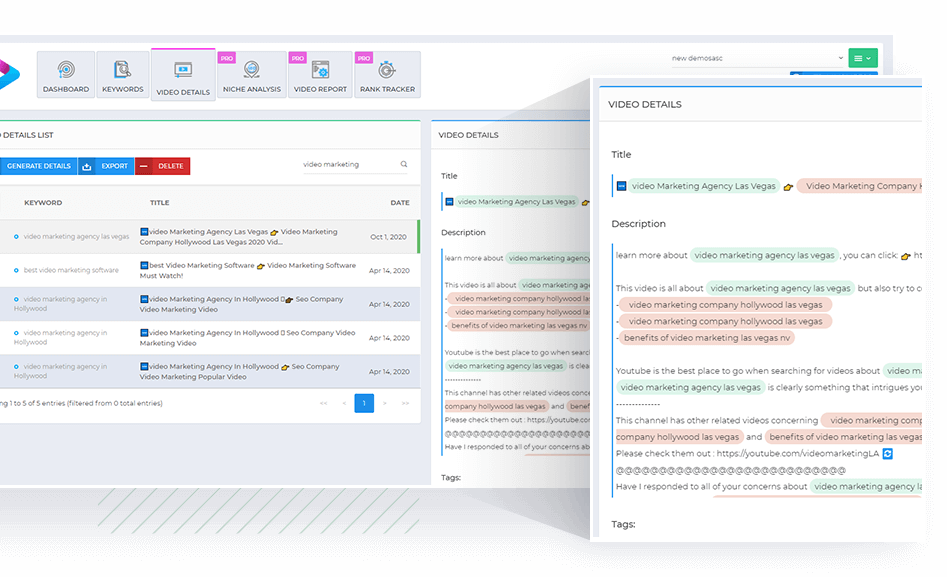 With Videly, you can find valuable keywords that have not been tapped and exploit them to create SEO optimized descriptions, tags, and titles.