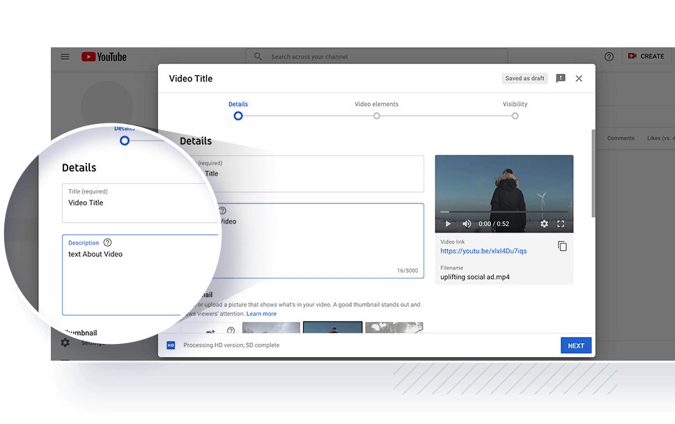Update your video description, tags, and title on YouTube with the ones recommended by Videly and watch your views skyrocket.